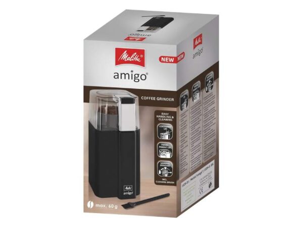Melitta® Amigo® იდეალურია მათთვის, ვისაც სურს სწრაფად და მარტივად დაფქვას ყავა ყოველდღიური მოხმარებისთვის. დაფქვის ხანგრძლივობის მიხედვით შეგიძლიათ მიიღოთ სხვადასხვა ტექსტურა – მსხვილი (ფილტრისთვის) ან უფრო წვრილი (მოკასთვის).