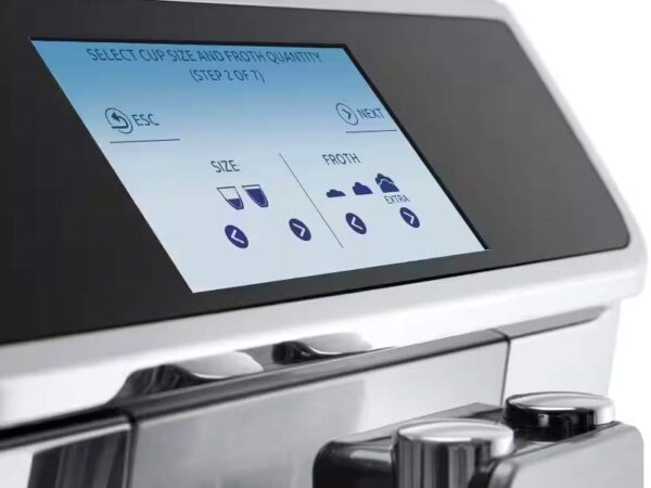 De’Longhi PrimaDonna Elite Experience ECAM650.85.MS არის პრემიუმ კლასის სრულად ავტომატური ყავის აპარატი, რომელიც თითის ერთი შეხებით ამზადებს ყველა თქვენ საყვარელ ყავას და რძიან სასმელებს LatteCrema სისტემით — სქელი, სტაბილური ქაფით და ზუსტი ტემპერატურით. აქვს დიდი ფერადი სენსორული ეკრანი, ფართო სასმელების მენიუ, ინდივიდუალური პროფილები სხვადასხვა მომხმარებლისთვის და მობილური აპით მართვის შესაძლებლობა. კონუსური საფქვავი 13 ფქვის დონით, არომატის/სიმტკიცის და მოცულობის დეტალური რეგულირება, ავტომატური წმენდა და მოხსნადი რძის კონტეინერი უზრუნველყოფს კომფორტულ ყოველდღიურ გამოყენებას სახლში ან პატარა ოფისში.