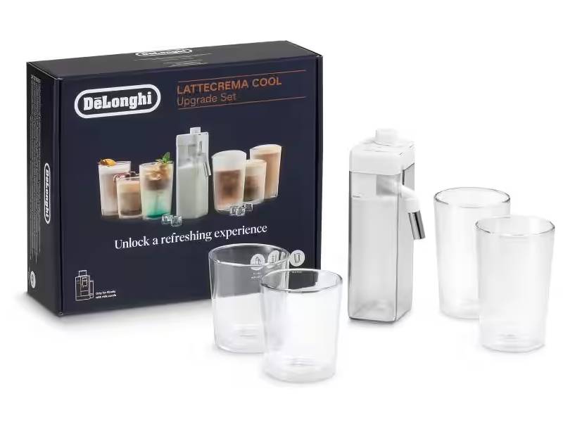 აღმოაჩინეთ დახვეწილი ყავის მომზადების ახალი დონე De’Longhi DLSC032 LatteCrema Cool Upgrade სეტის დახმარებით. ეს სპეციალური ნაკრები განკუთვნილია De’Longhi-ის ყავის აპარატებისთვის, EXAM440.55 და ECAM630.55 სერიის მოდელებისთვის და გაძლევთ შესაძლებლობას, მოამზადოთ კრემოვანი, ხავერდოვანი ქაფი არა მხოლოდ ცხელი, არამედ ცივი სასმელებისთვისაც. იდეალურია კაპუჩინოს, ლატეს, მაკიატოს, ცივი ყავისა და სხვა რძიანი სასმელების რეცეპტების მოსამზადებლად.
