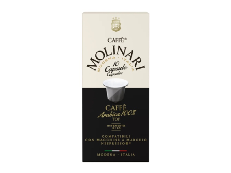 Molinari Arabica 100% – Nespresso-ს სისტემის აპარატებთან თავსებადი (“ევროპული”) ყავის კაფსულები.