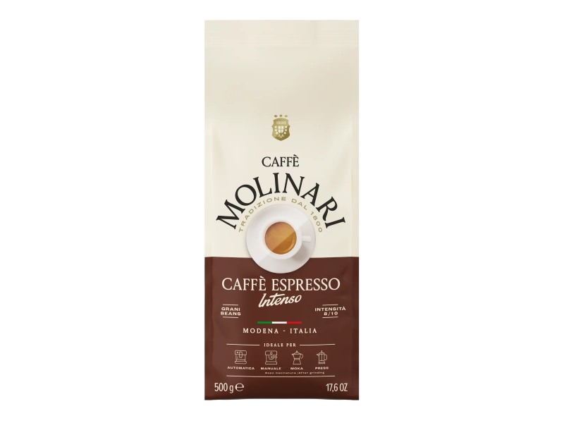 Caffè Molinari Espresso Intenso – 40% არაბიკის და 60% რობუსტას ბლენდი საშუალოზე მუქი მოხალვით ინტენსიური ესპრესოს მოყვარულებისთვის იდეალური არჩევანია. ძლიერი, სრულსხეულიანი ყავა კლასიკური იტალიური ხასიათით. გამოირჩევა სქელი და მდგრადი კრემათი, შავი შოკოლადისა და მოხალული მარცვლეულის ნოტებით და პრაქტიკულად ნულოვანი მჟავიანობით.