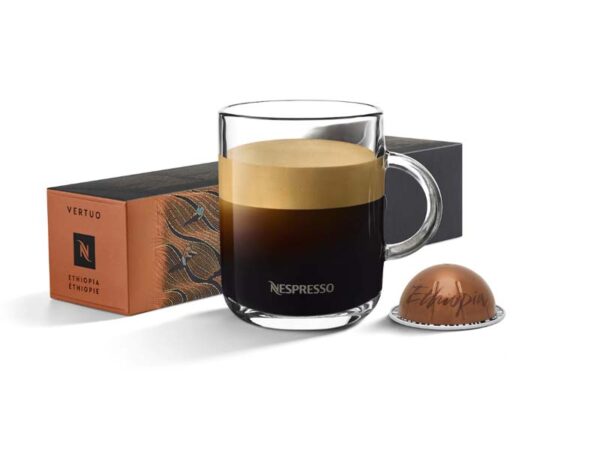 ნესპრესო ვერტუო ეთიოპია თავისი წარმოშობიდან გამომდინარე არის ბუნებრივად ყვავილოვანი ყავა, რომელიც იძენს ხილის კომპლექსურ არომატს თავისი საფირმო გაშრობის მეთოდით. ავლენს მწიფე მოცვის და მუსკატის კაკალის სასიამოვნო ნოტებს.