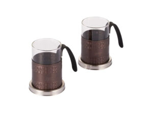 Gipfel Glacier-Stockholm-ის ყავის ჭიქების კომპლექტი უმაღლესი ხარისხის გამჭვირვალე მინისგან. ჭიქები აღჭურვილია მბზინავი ქრომირებული სადგამით და ჩადგმულია გრაფიტის ფერის ჩარჩოში. მის ზედაპირს ამშვენებს წარწერა „COFFEE“. ჩარჩოზე დამაგრებულია კომფორტული შავი პლასტმასის სახელური. წარმოებაში გამოყენებული ყველა მასალა ეკოლოგიურად სუფთაა.