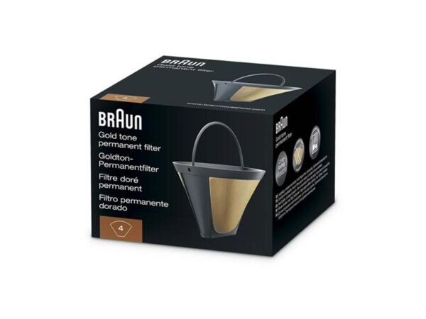 ყავის მრავალჯერადი ფილტრი Braun Gold Tone არის Delonghi-ის გამოშვება, ბრაუნის ყველა წვეთოვანი(ფილტრიანი) აპარატისთვის (KF7000BK, KF7070,KF7150BK,KF7170SI,KF7175,KF7370SI,KF9070SI,KF9150BK,KF9150WH,KF9170SI).